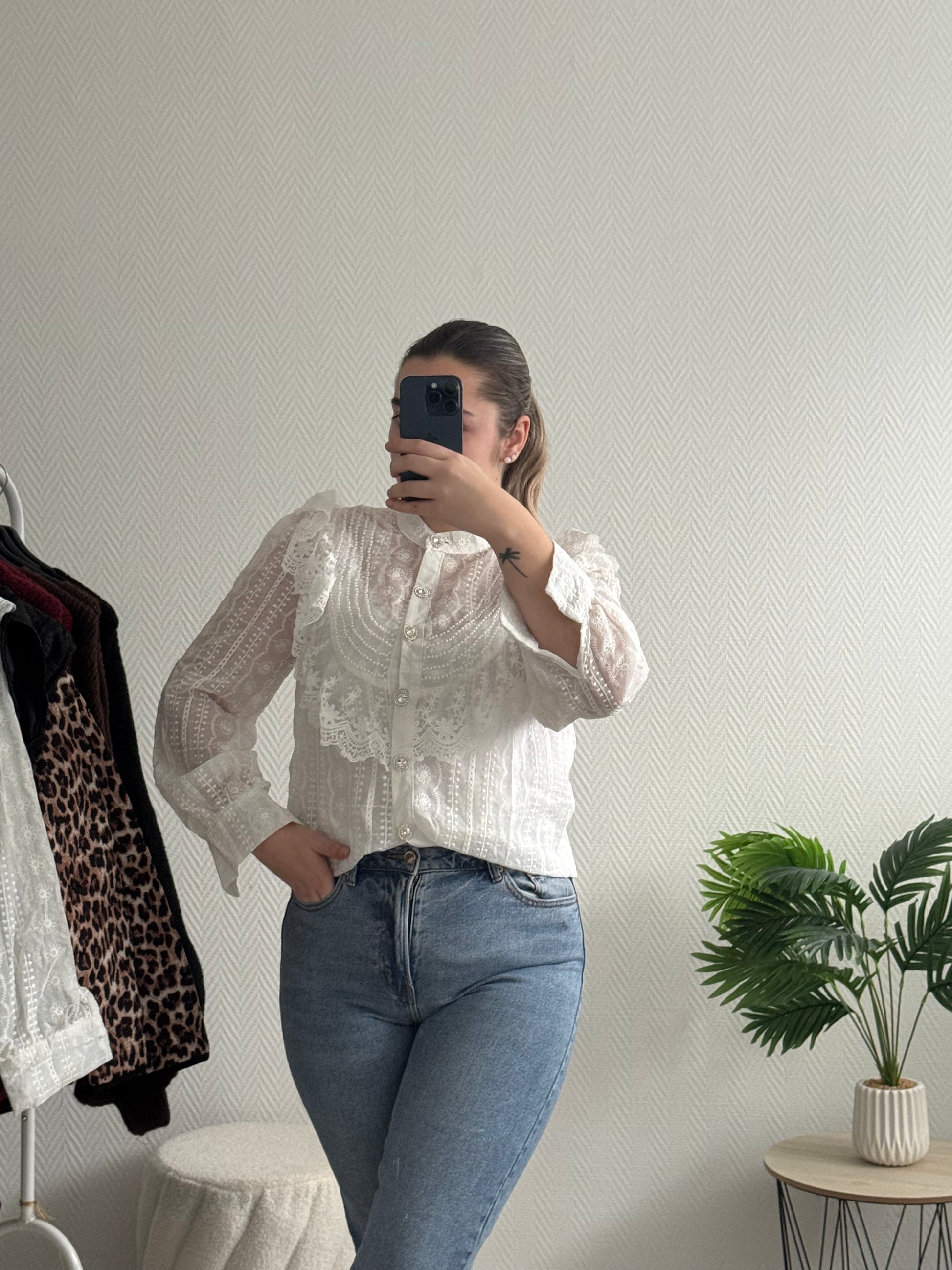 Chemise uni bohème et brodée avec perles